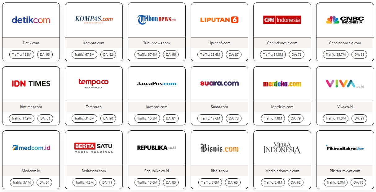 Contoh domain otoritas kuat berasal dari media nasional seperti gambar di atas atau blog dengan niche spesifik yang relevan.